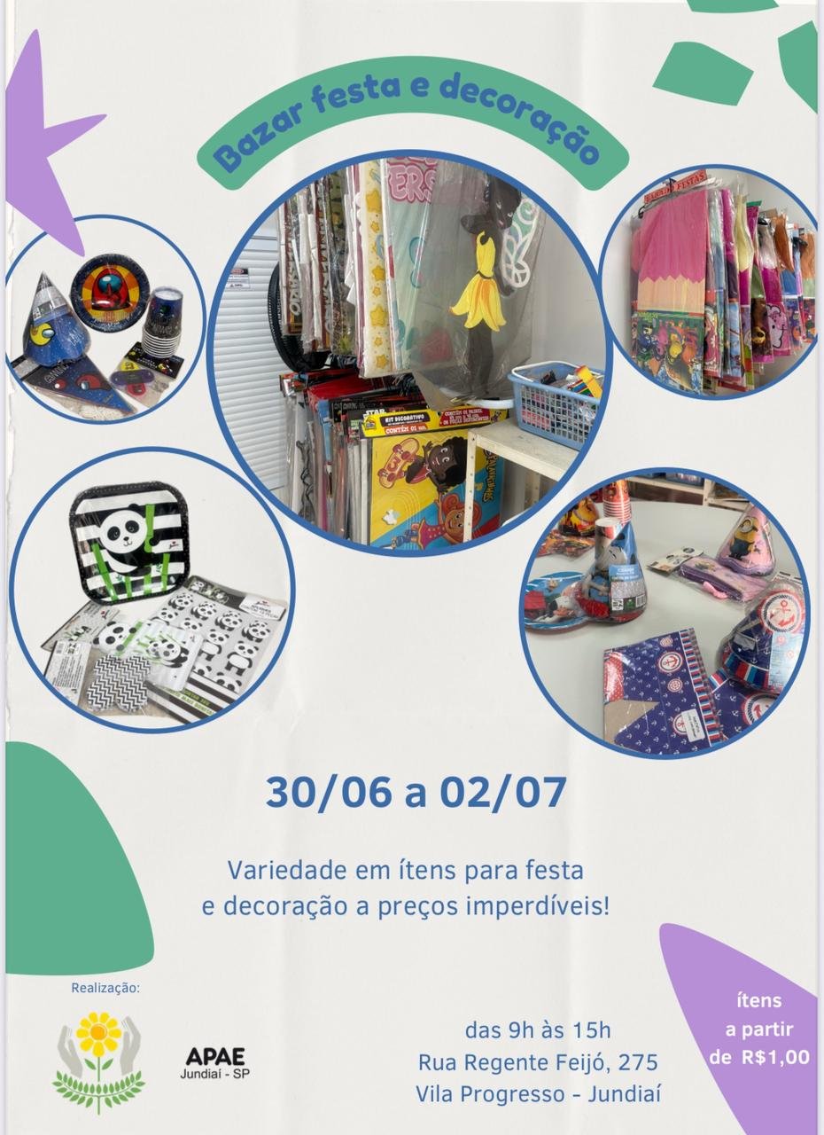 O Bazar de Decoração para Festas está localizado na Rua Regente Feijó, 275, Vila Arens, Jundiaí. Informações pelo telefone: (11) 4588-2900.