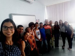 Aproximadamente 15 voluntários da APAE de Jundiaí, que atuam na digitação das notas ficais dentro do Programa da Nota Fiscal Paulista, se reuniram para celebrar