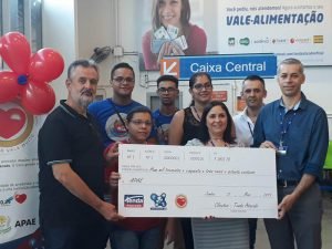 O presidente da APAE de Jundiaí, Wagner Chachá, recebeuno dia 31 de maio um cheque no valor de R$ 1.353,70 das mãos da Coordenadora de