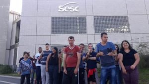 Cerca de 35 alunos do Centro de Convivência da APAE de Jundiaí visitaram a exposição “Perambular” montada no Sesc da cidade. Para que pudessem chegar